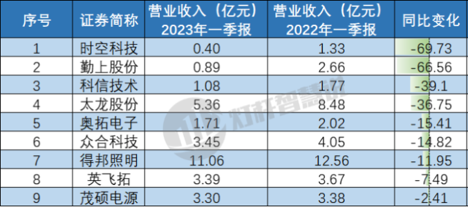 在净利润方面,有7家企业一季度的净利润为负增长。