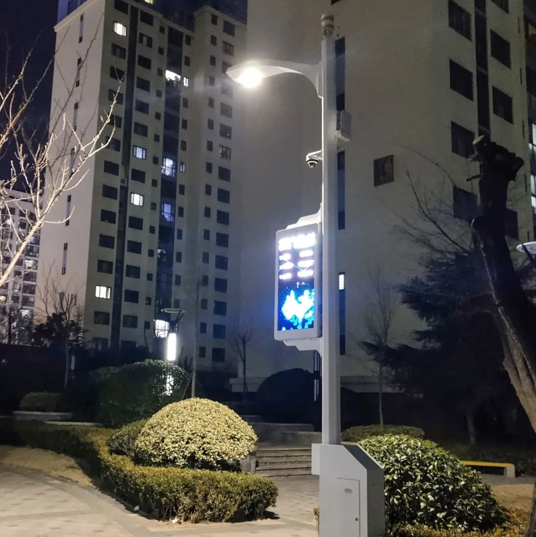 项目特点:城阳区新型智慧社区(街区)推广建设项目,除了照明功能,还集结了众多黑科技,包括环境监测、智能供电、视频监控、一键报警、信息发布等功能。